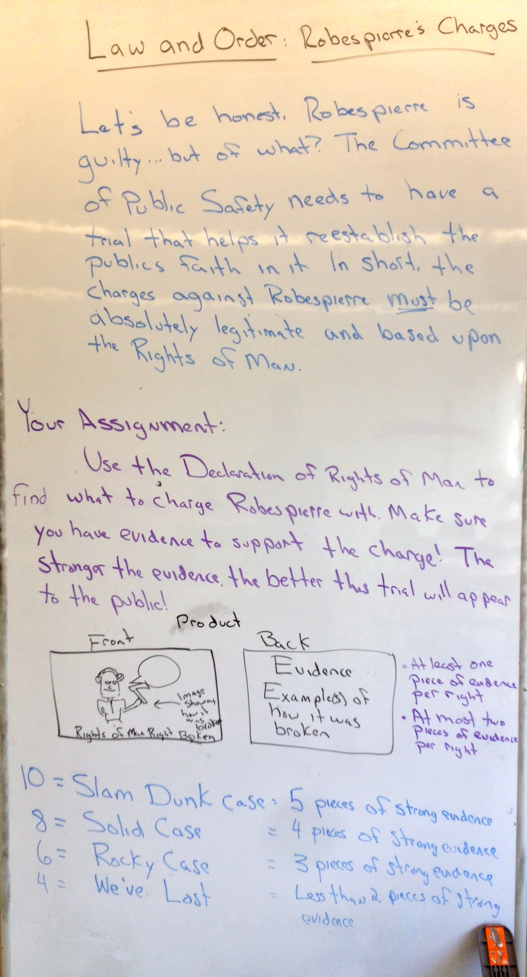 This year, students used their textbook to collect evidence against Robespierre, but I may seek out secondary sources for next year.