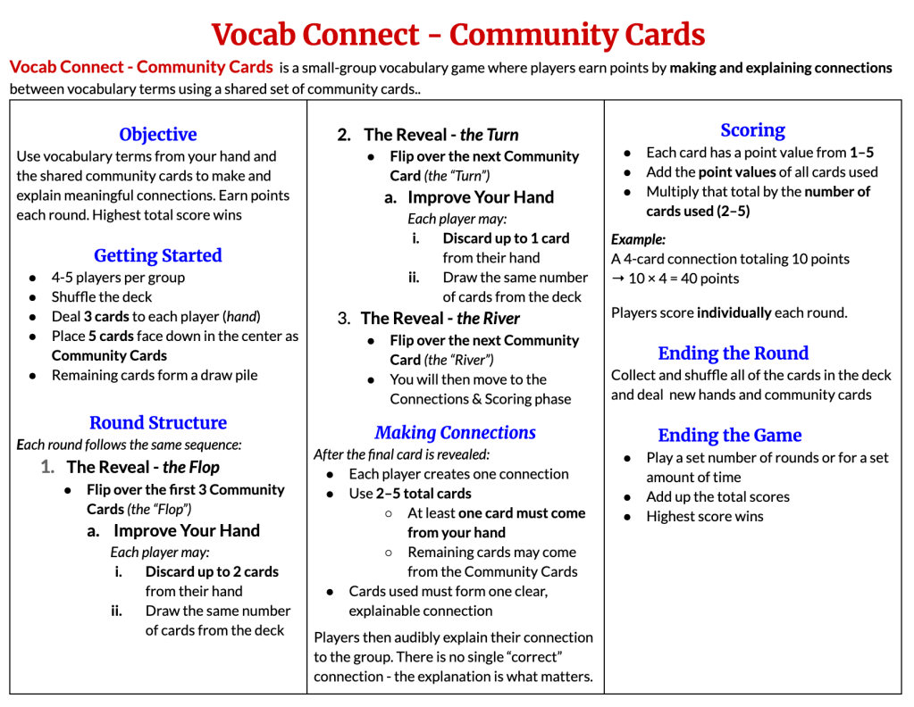 - Vocab Connect Game Rules