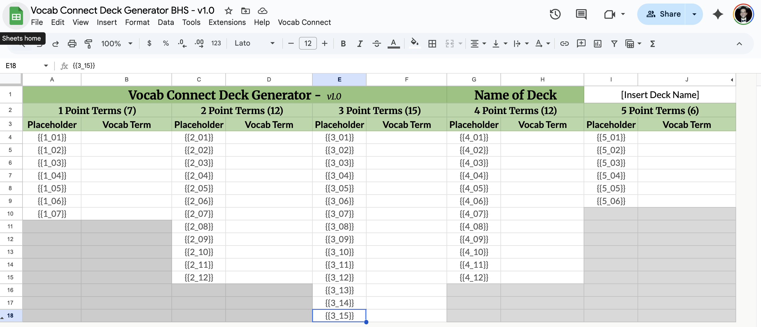- Vocab Connect Deck Generator– the Google Sheet