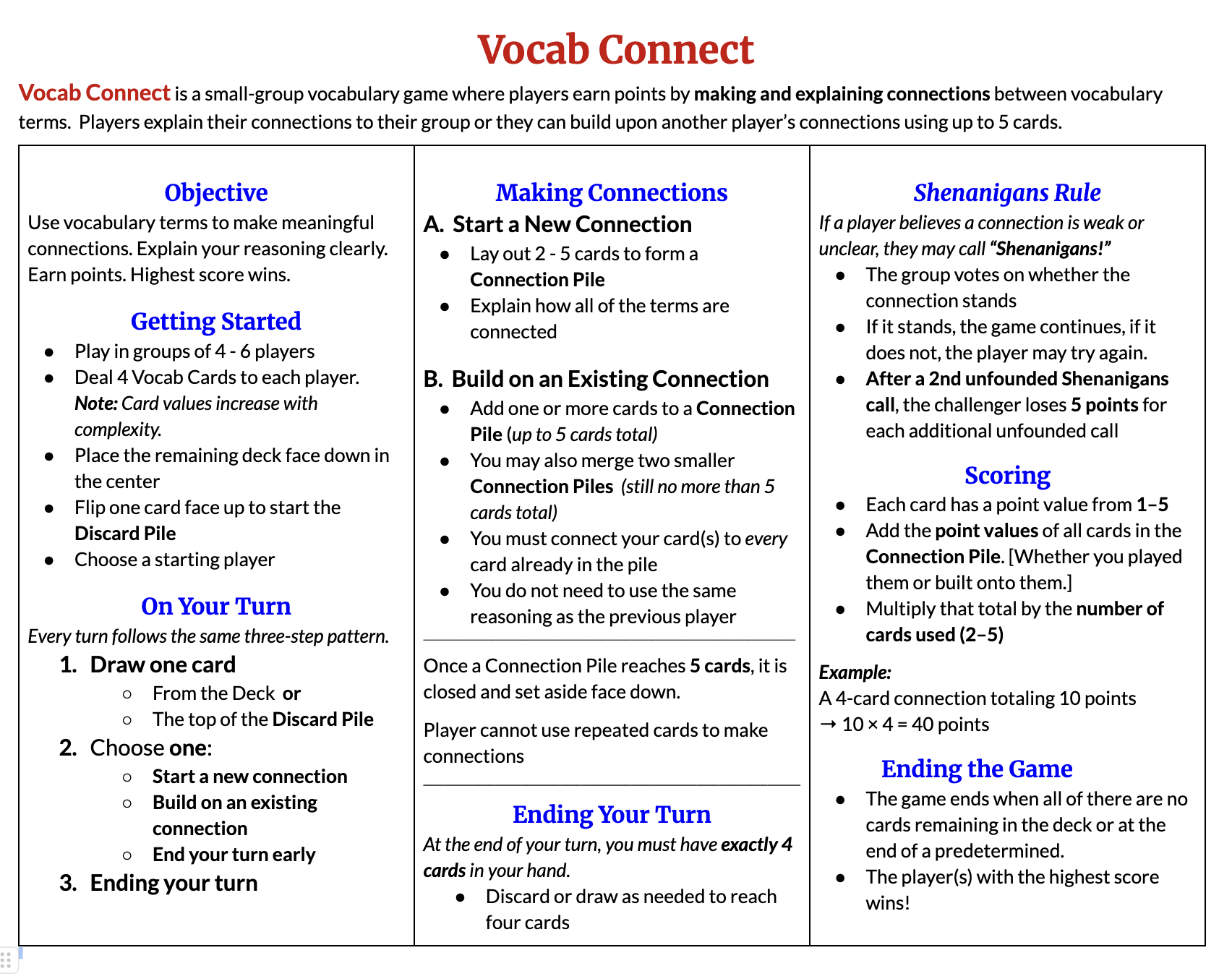- Vocab Connect Game Rules